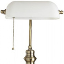 Настольная лампа офисная стиля модерн для кабинета, офиса имеет размеры 270х400х250 мм. Арматура светильника окрашена в бронзовый цвет. Лампы в комплекте - отсутствуют. В светильнике применяются лампы накаливания или светодиодная LED-лампа. Цвет плафонов - белый, с глянцевой поверхностью. Материал плафонов - стекло. Класс электробезопасности - II, степень пылевлагозащиты (IP) - 20. Максимальная мощность лампы (Вт) - 60. Светильник размещается на столе.