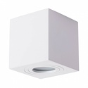 Накладной светильник стиля техно для гостиной, кабинета, кладовой,коридора, прихожей или спальни,туалета имеет размеры 90x90x95 мм. Арматура светильника окрашена в белый цвет. Лампы в комплекте - отсутствуют. В светильнике применяются галогеновая лампа или светодиодная LED-лампа. Цвет плафонов - белый, с матовой поверхностью. Материал плафонов - дюралюминий. Класс электробезопасности - I, степень пылевлагозащиты (IP) - IP44. Максимальная мощность лампы (Вт) - 35. Светильник размещается на потолоке и стене.