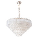 Подвесной светильник стиля модерн для гостиной, кабинета, прихожей или спальни имеет размеры 570x350 мм. Арматура светильника окрашена в золотой цвет. Лампы в комплекте - отсутствуют. В светильнике применяются лампы накаливания или светодиодная LED-лампа. Цвет плафонов - неокрашенный, с прозрачной поверхностью. Материал плафонов - хрусталь. Класс электробезопасности - I, степень пылевлагозащиты (IP) - 20. Максимальная мощность лампы (Вт) - 40. Светильник размещается на потолоке.