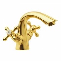 Назначение: для умывальника • Конструкция: двухрычажный • Монтаж: горизонтальный • Материал: покрытие - золото • Монтажные отверстия: 1 отверстие • Форма излива: традиционная • Душевая лейка в комплекте: нет • Донный клапан в комплекте: есть