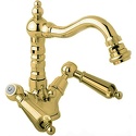 Назначение: для биде • Конструкция: двухрычажный • Монтаж: горизонтальный • Материал: латунь, покрытие - золото • Монтажные отверстия: 3 отверстия • Форма излива: традиционная • Душевая лейка в комплекте: нет • Донный клапан в комплекте: есть