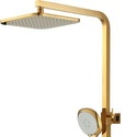 Устройство: душевая система • Смеситель: джойстик • Ручная лейка: настройки 3 шт • Верхний душ: размер 220 мм, настройки 1 шт • Комплектация: ручной душ, смеситель, стойка, шланг, крепление ручного душа, полка • Покрытие: под золото