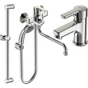 Смеситель керамический картридж. хромированный. Длина шланга: 150 см. Стандарт подводки: 1/2". со смесителем. латунь. металлич. шланг. с защитой от обратного потока. состав к-та: душевая лейка, душевая штанга, настенный держатель, смеситель, шланг для душа- BA234AA смеситель для раковины BA240AA смеситель для ванны с душем, излив 32 см с керамическим переключателем BA196AA штанга для душа 60 см с держателем для лейки, металлический шланг, душевая лейка диаметр 7 см 1-функция, настенный держатель.