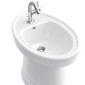 Биде, пристенная конструкция, напольная установка , из санфарфора, горизонтальный выпуск